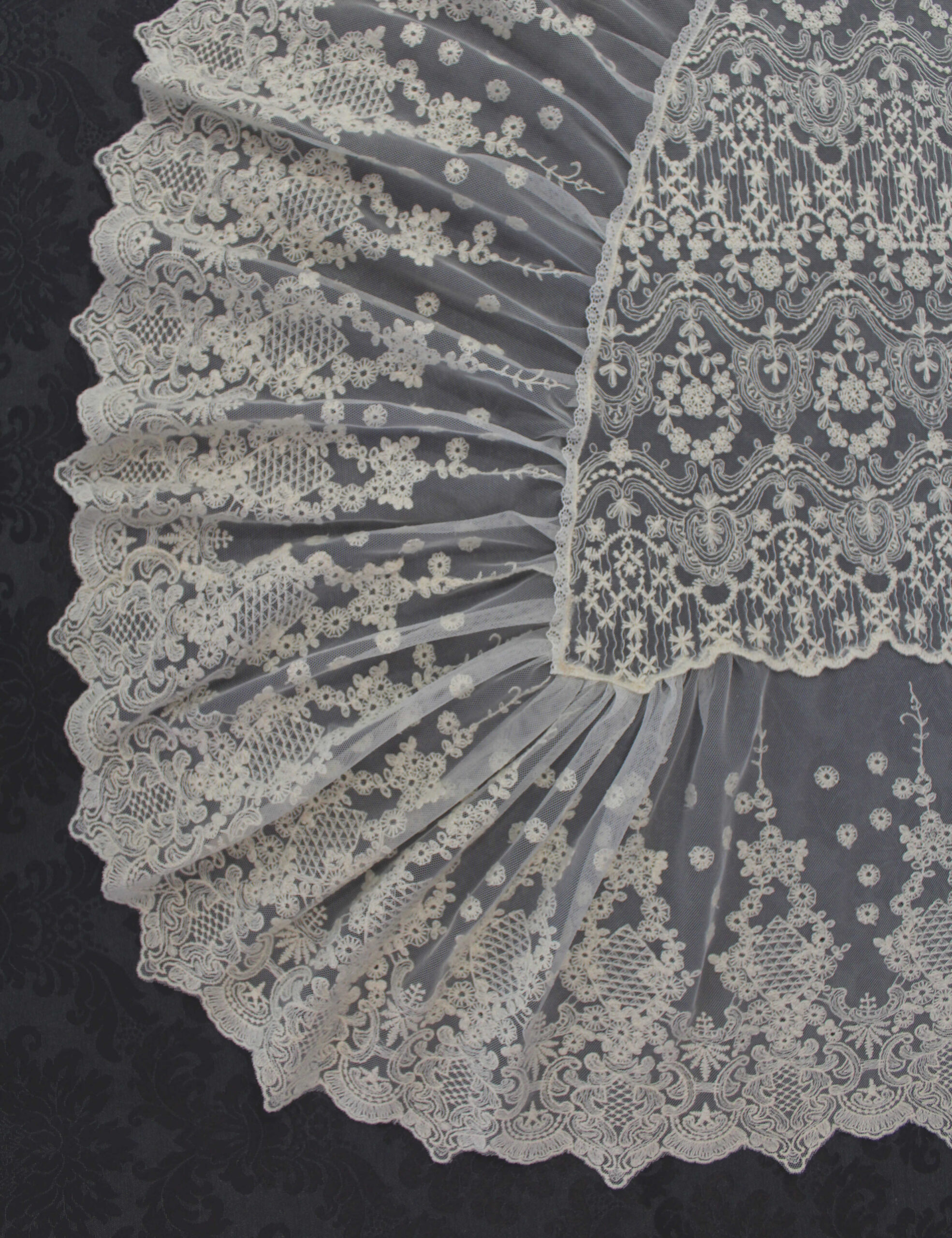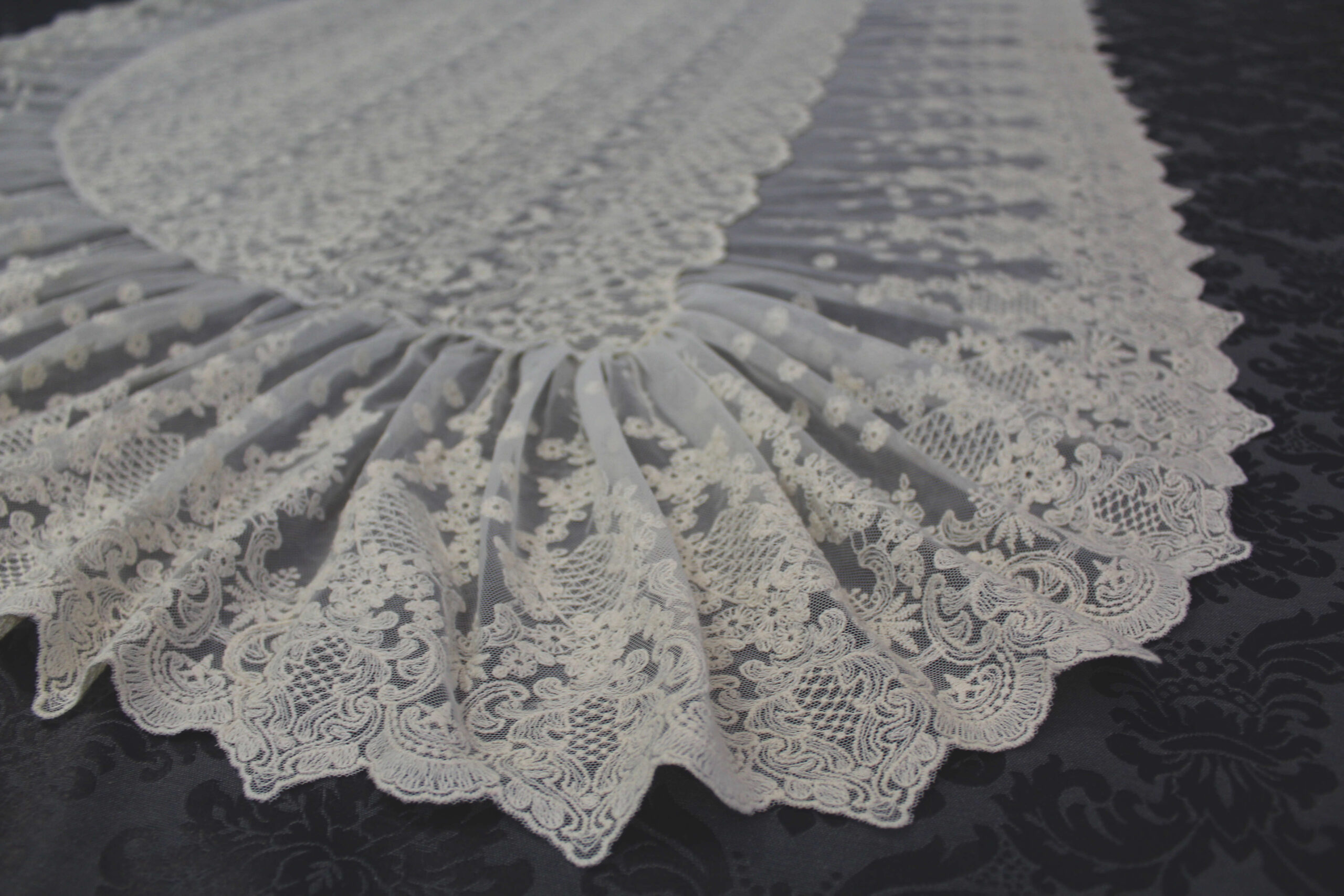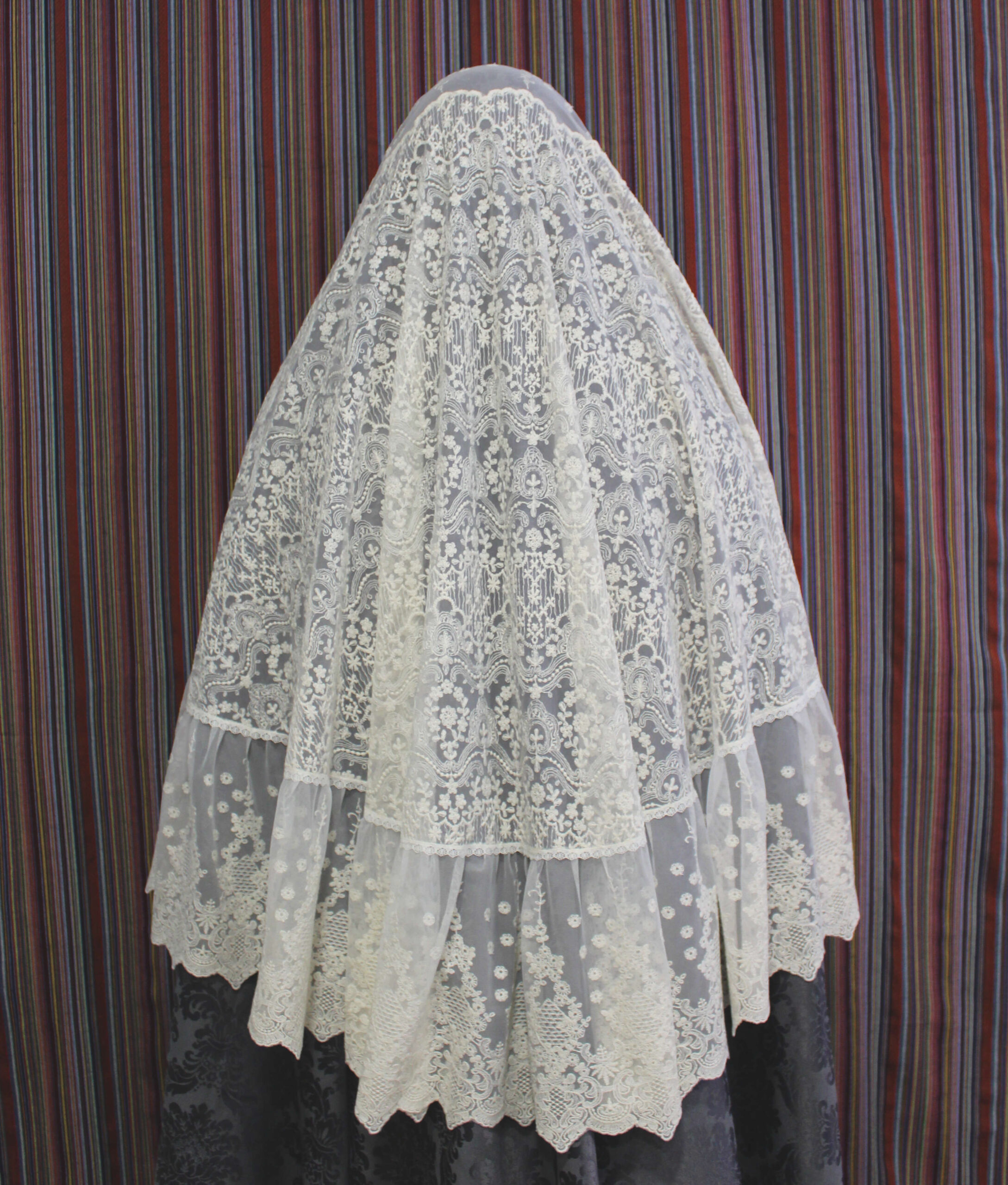 Mantilla medialuna con puntilla. Clásica y bella, con el toque tradicional del tul algodonero.